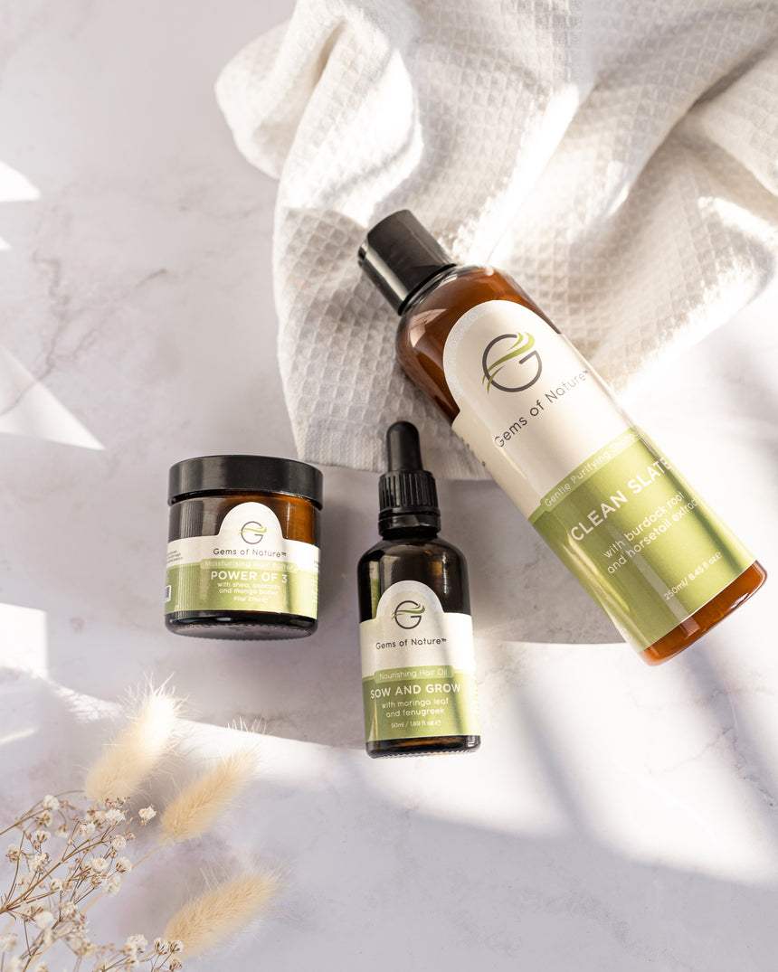 Backed by science and grounded in nature, Gems of Nature products are thoughtfully formulated with high-performance botanicals and plant actives chosen to restore balance, strengthen strands, and support long-term hair health. Each formula is designed to work in harmony with your hair and scalp — free from harsh chemicals and unnecessary fillers — delivering gentle yet effective care that prioritises consistency, integrity, and results you can feel over time.