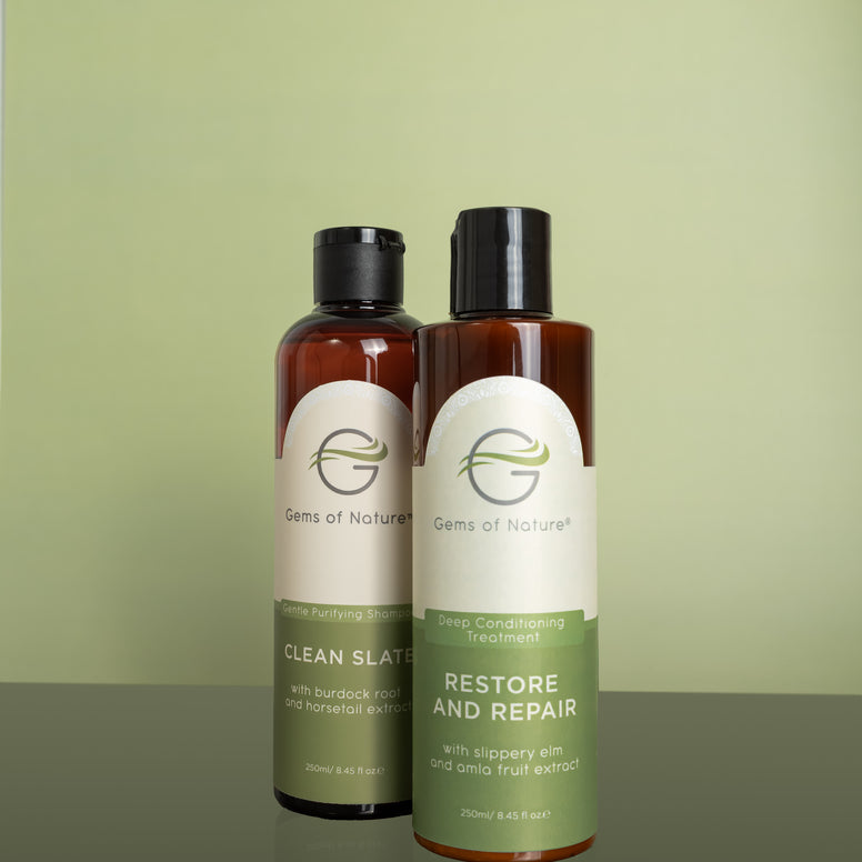 Begin your Gems of Nature experience with The Revive Set — a gentle yet powerful duo designed to restore balance to the scalp and strands. Infused with botanical actives and nutrient-rich oils, this harmonising pair cleanses impurities while replenishing moisture, leaving your hair refreshed, soft, and naturally radiant.